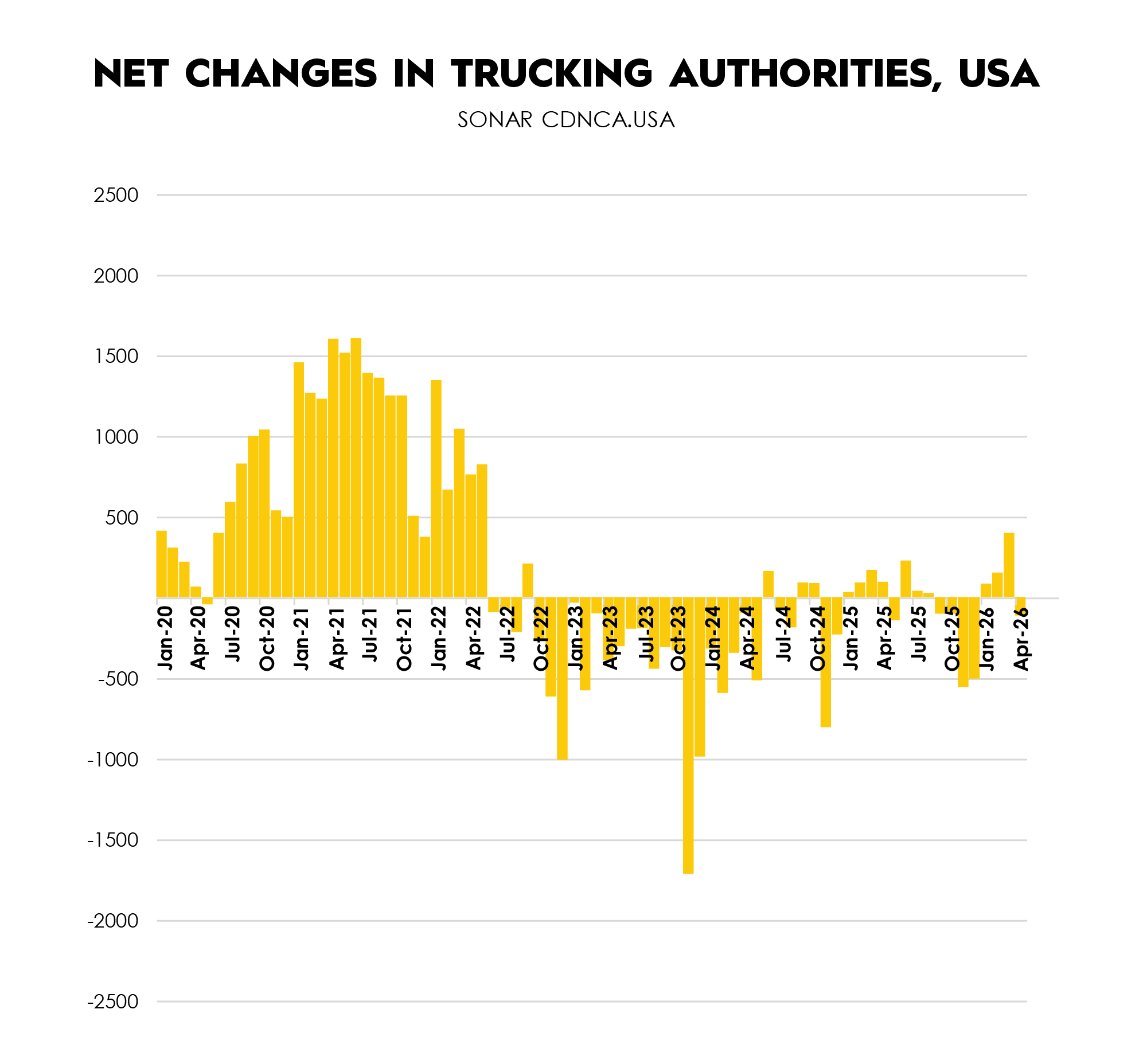 Q1 showed modest growth in U.S. trucking authorities, but levels remain below historical averages. Despite some re-entry, capacity is still insufficient relative to current demand.