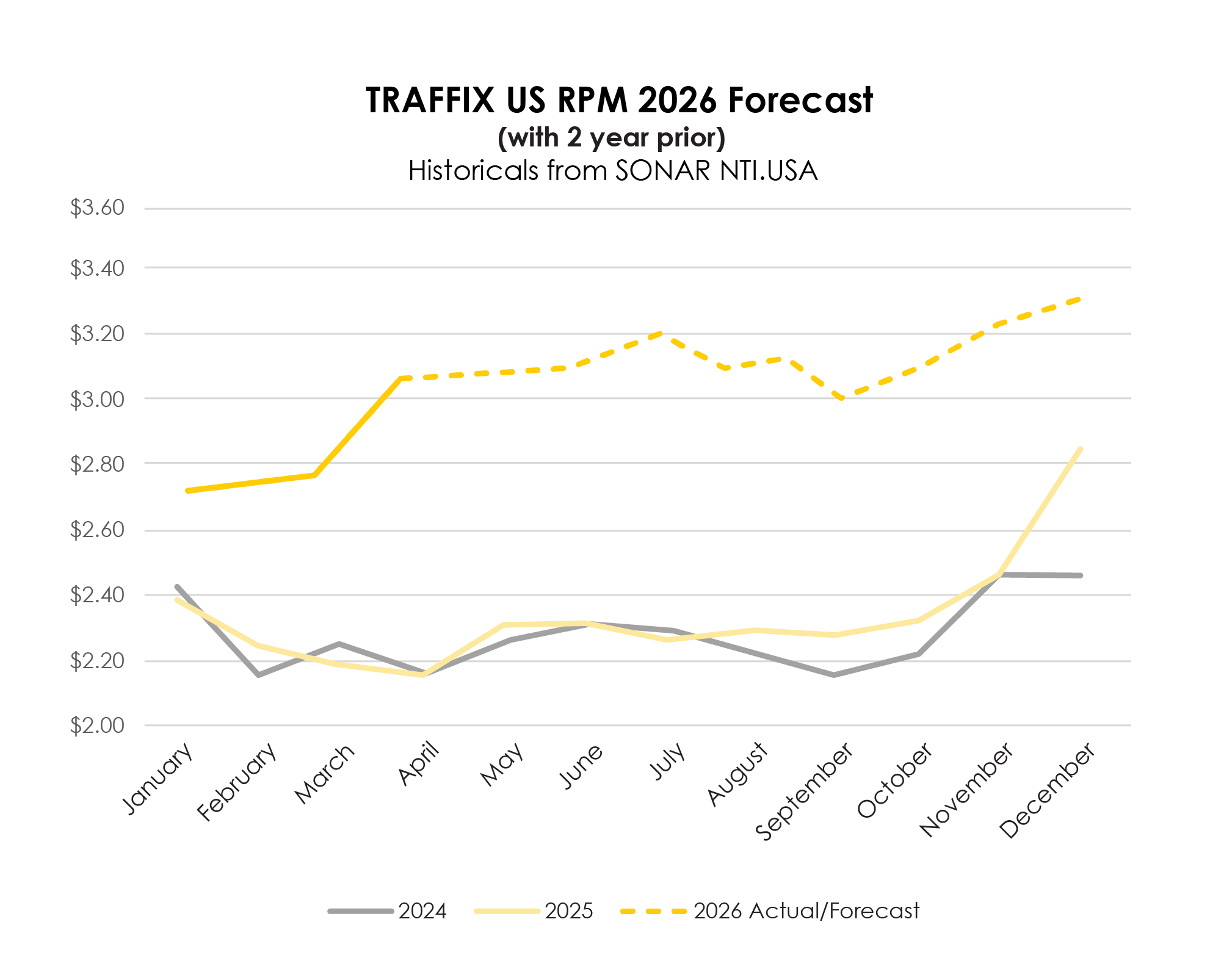 Dry van rates are expected to remain elevated through mid-2026, supported by strong freight demand and tight capacity. Contract rate increases will continue as shippers adjust to sustained spot market pressure.