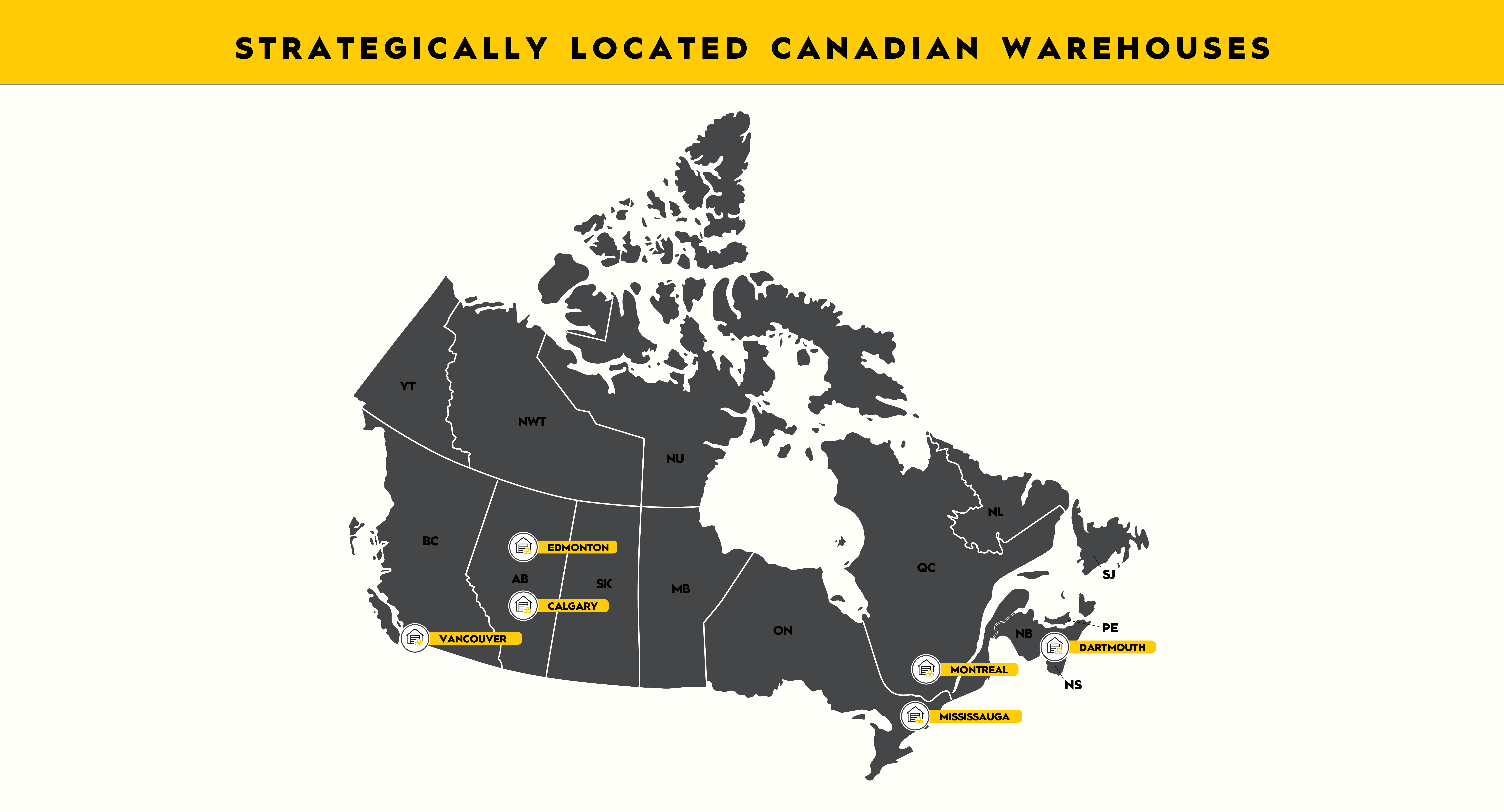 TRAFFIX offers warehousing space strategically located across the USA and Canada. Additionally, we can source, vet, and manage warehouses in your specific service area as required. Contact us today for our current space availability or to discuss your unique warehousing requirements.